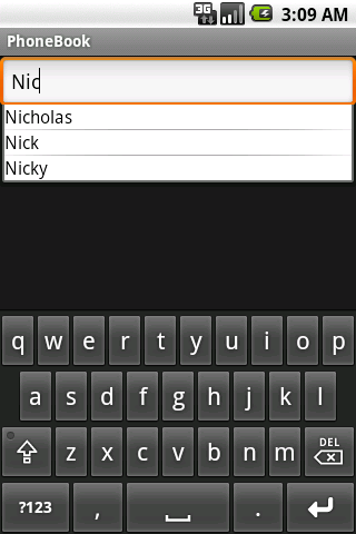 01.<?xml version="1.0" encoding="UTF-8"?>02.<LinearLayout xmlns:android="http://schemas.android.com/apk/res/android"03. android:orientation="vertical"04. android:layout_width="fill_parent"05. android:layout_height="fill_parent">"06. <AutoCompleteTextView07. android:id="@+id/autoComplete"08. android:layout_width="fill_parent"09. android:layout_height="50px">10. </AutoCompleteTextView>11.</LinearLayout>